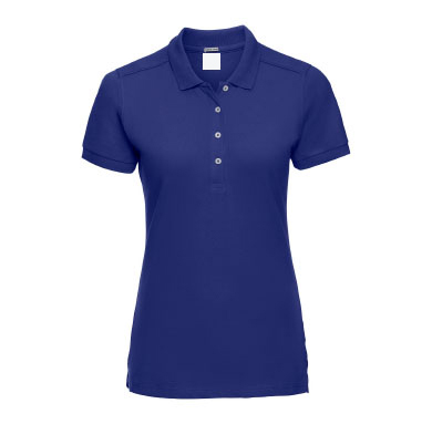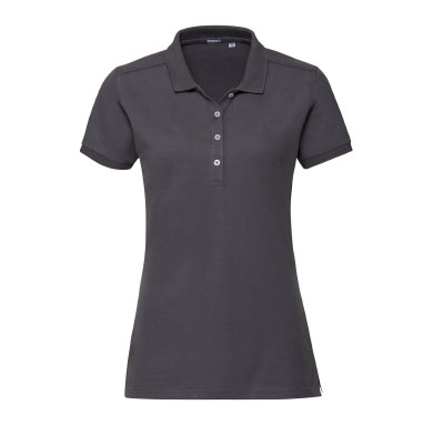 95% cotone, 5% lycra. Polo a maniche corte set-in, morbida al tatto, 4 bottoni a contrasto, colletto con risvolto sottile, maniche con costine, struttura con cuciture e spacchetti laterali, leggermente sfiancata. Col. LX: 88% cot. 7% vis. (Col. 30: 205g/m²)
