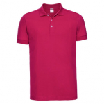 95% cotone, 5% lycra. Polo a maniche corte set-in, morbida al tatto, 3 bottoni a contrasto, colletto con risvolto sottile, struttura con cuciture e spacchetti laterali. Col. LX: 88% cot. 7% vis. (Col. 30: 205 g/m²)